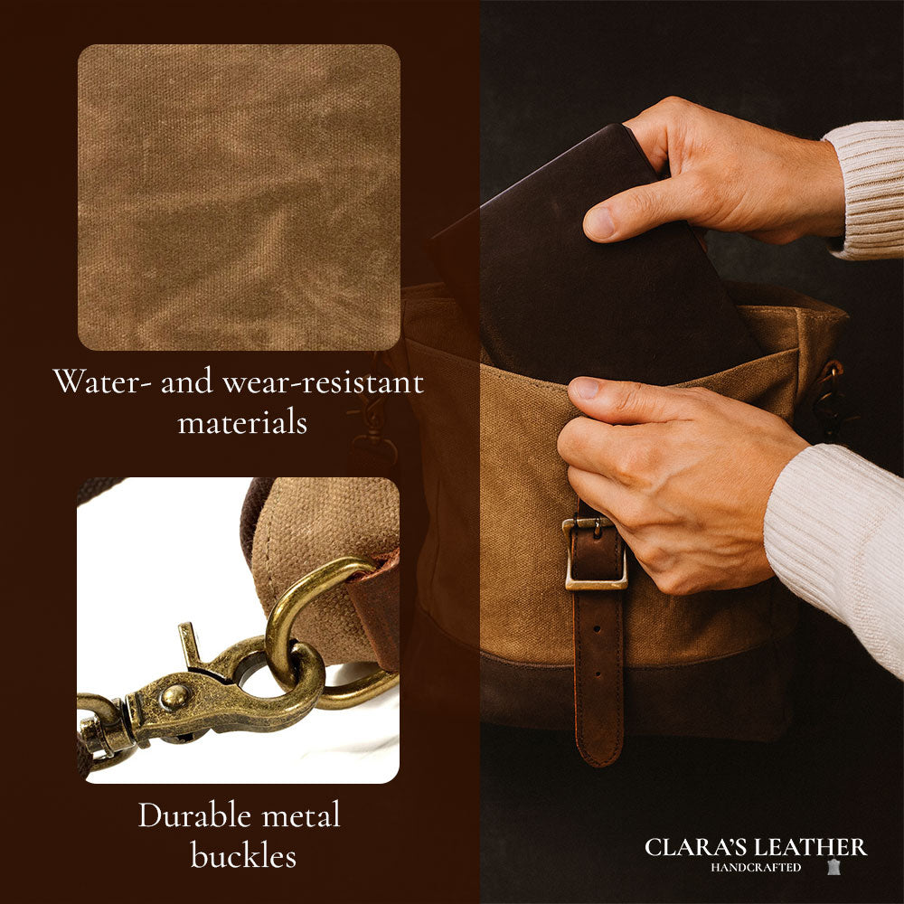 Durable and Long-Lasting: Crafted from woven waxed cotton canvas and cowhide crazy horse leather, William is designed for resilience. Its rugged materials resist wear, water, and time—growing in character with every journey.